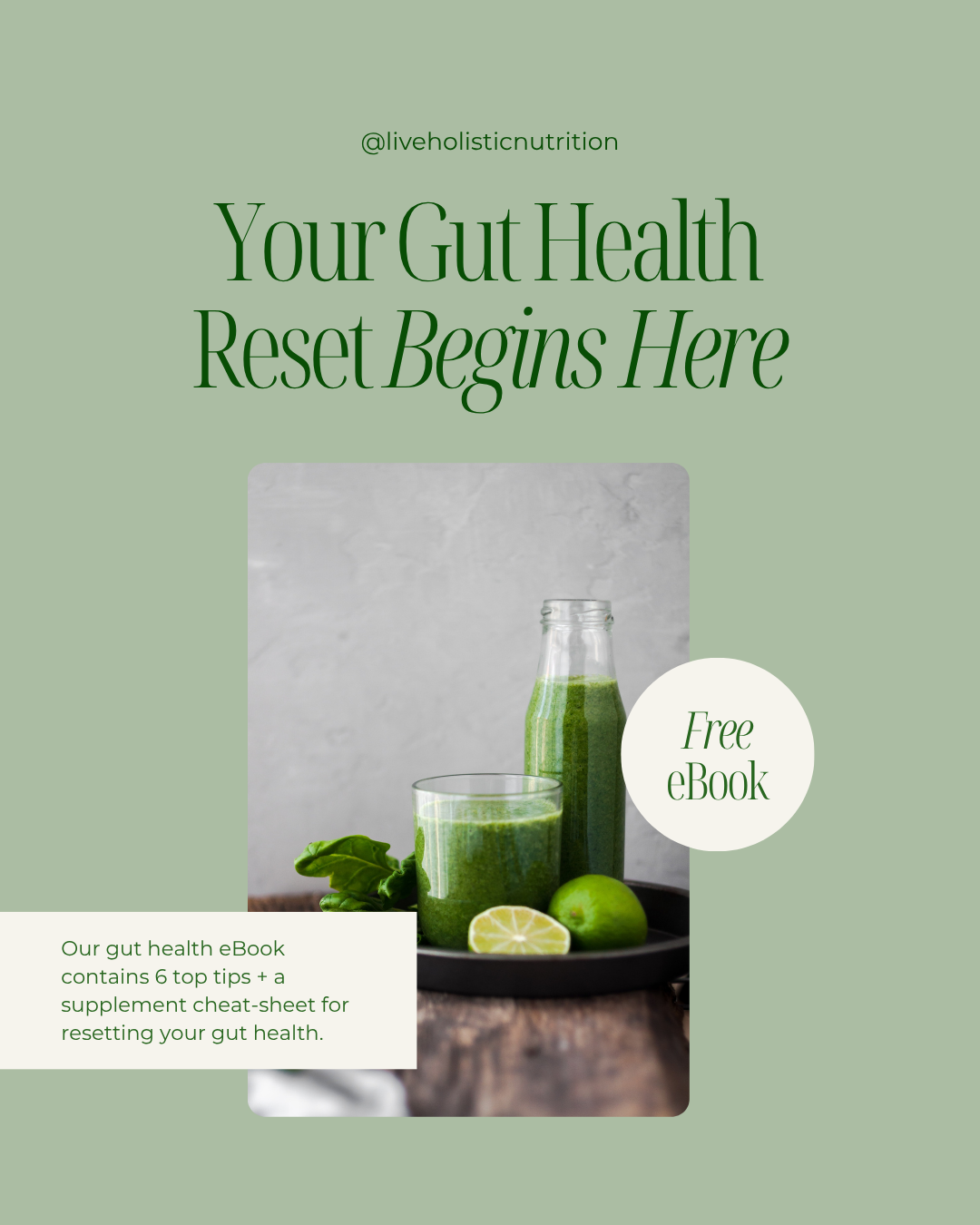 The ultimate foundational guide to re-setting your gut health. Our e-book contains our 6 top tips to support your health along with a supplement guide.